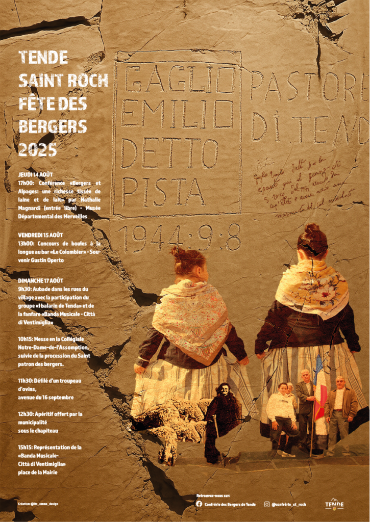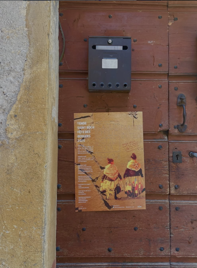 Ce projet s’inscrit dans un contexte local et collectif, au cœur de la fête annuelle de la Saint Roch du village de Tende (Alpes-Maritimes). Réalisée entre mars et début juillet, cette affiche a été pensée comme un moyen de rassembler, d’attirer et de renouveler le regard porté sur cet événement. L’objectif était double : ramener du monde tout en se démarquant des affiches des années précédentes, sans perdre l’esprit de la fête. J’ai abordé ce projet avec attention et écoute, en cherchant à comprendre ce que cette célébration représente pour les habitants, et comment une image pouvait à la fois respecter la tradition et proposer une lecture plus contemporaine, sensible et engageante.